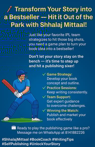 #ShhalajMittaal #BookCoach #WritingTips #SelfPublishing #AuthorSupport #UnlockYourStory